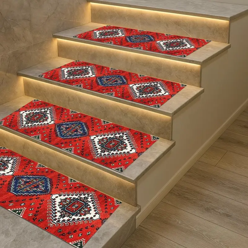 Red & Blue Geometric Design Vintage Style Printed Step Rug
