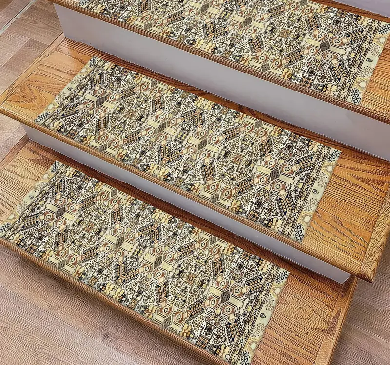 Vintage Yellow & Beige Printed Step Rug with Intricate Design