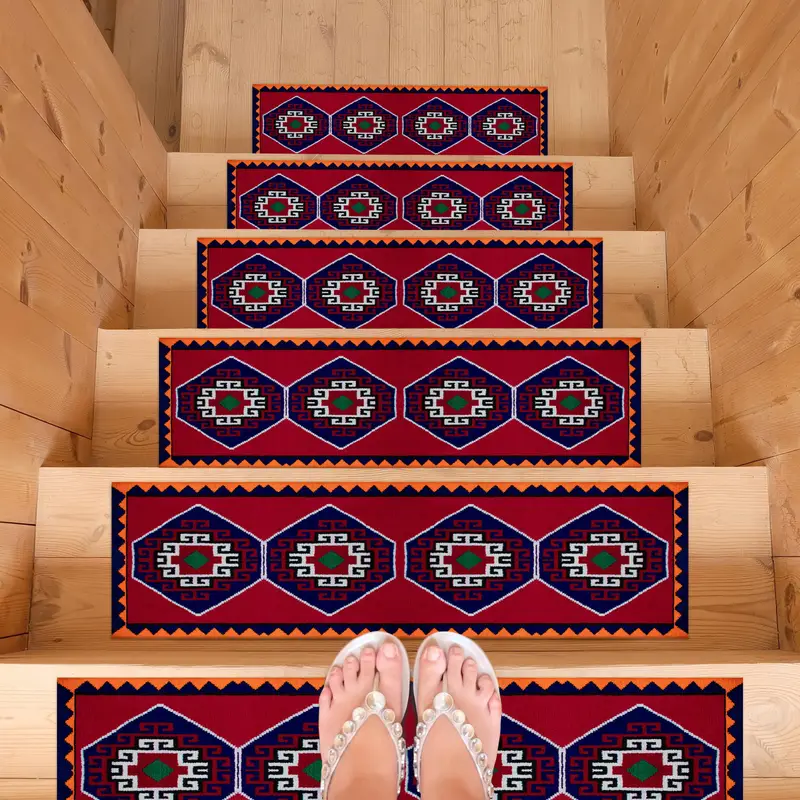 Red Ethnic Geometric Pattern Printed Rug for Modern Interiors