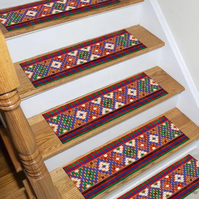 Geometric Printed Step Rug with Colourful Design for Modern Homes