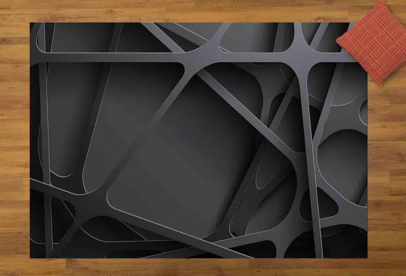 Abstract Black Metallic Effect Modern Printed Rug, Contemporary Design
