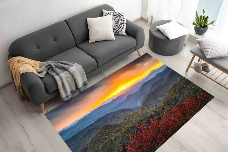 Sunset Mountain Landscape Printed Rug - Nature Inspired Design