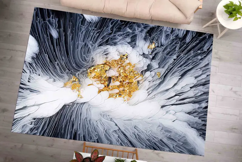 Smoke Abstract Modern Printed Rug: Luxury Contemporary Design
