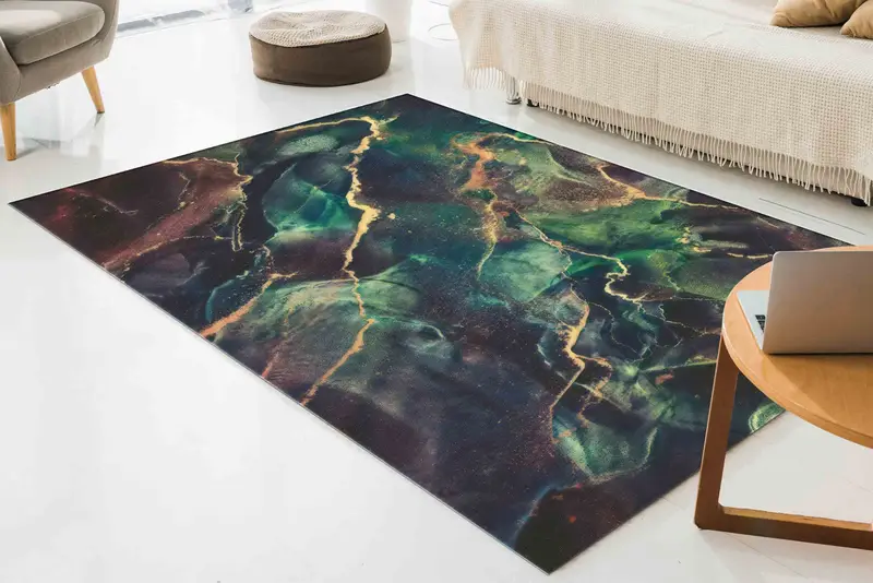 Shimmery Gold Marble Printed Rug: Contemporary Luxury Design