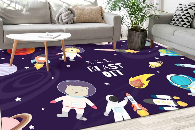 Astronaut Sky Landscape Printed Rug for Kids Room