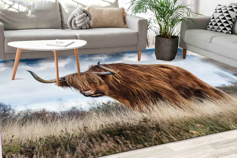 Nature-Inspired Highland Cow Print Rug for Modern Living Spaces
