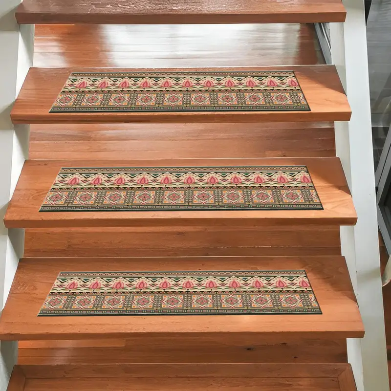 Geometric Pattern Printed Rug: Aztec Kilim Boho Step Rug
