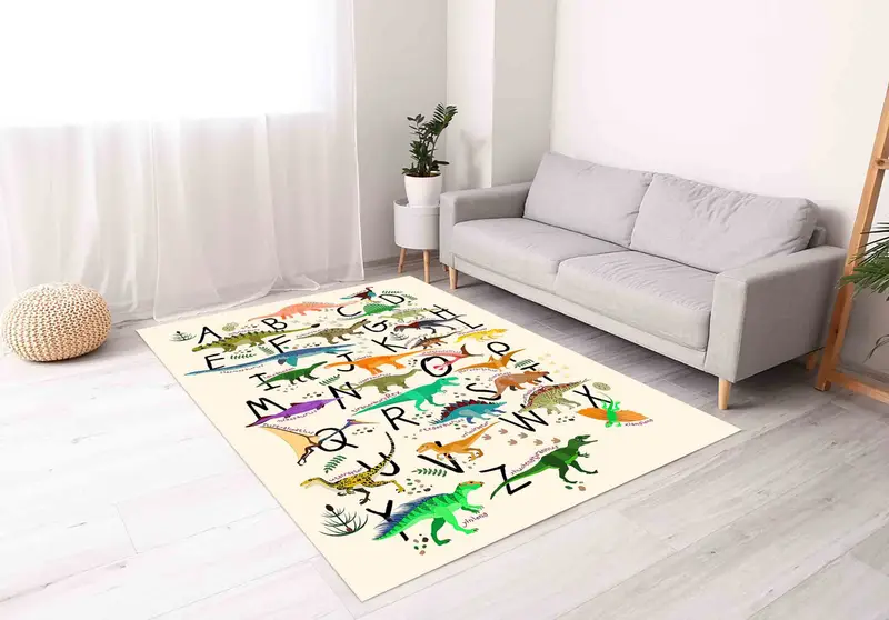 Alphabet Dino Print Rug, Kids Room Rug, Educational Dinosaur Rug