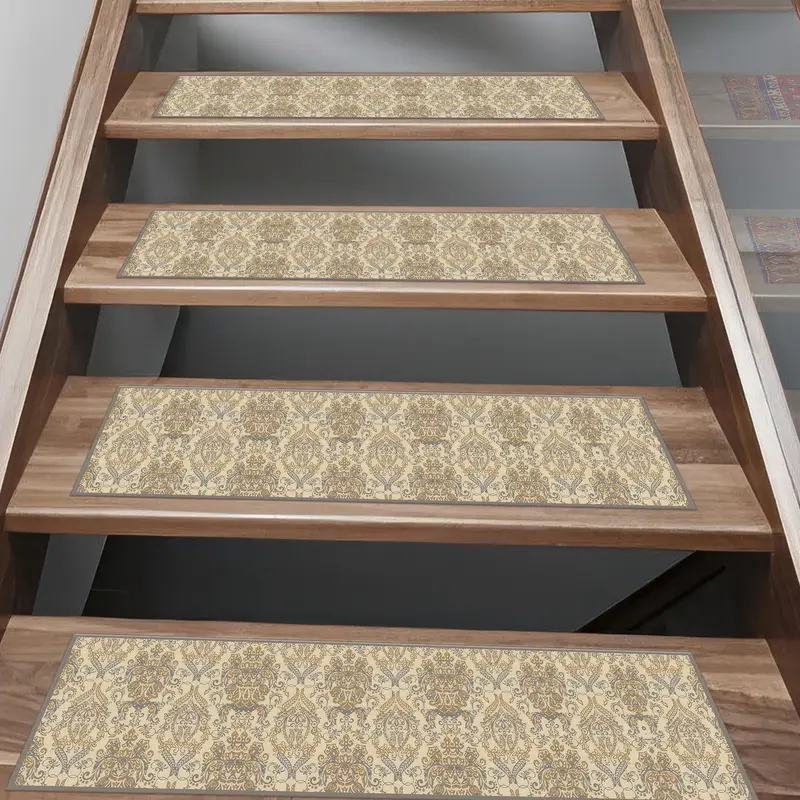 Beige Kilim Printed Rug: Bohemian Ethnic Step Rug