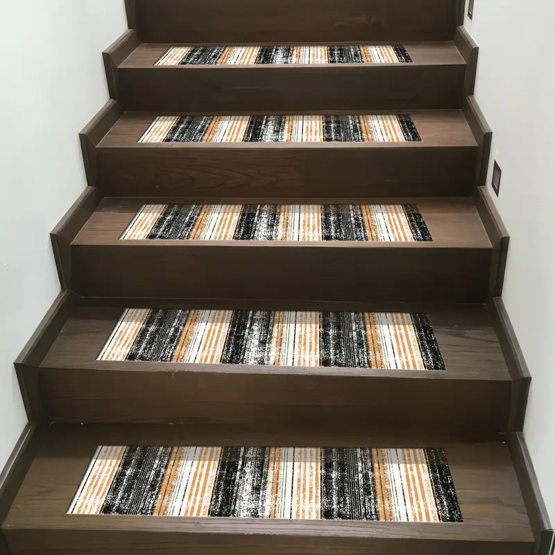 Black & Orange Striped Minimalist Printed Step Rug, Trendy Boho