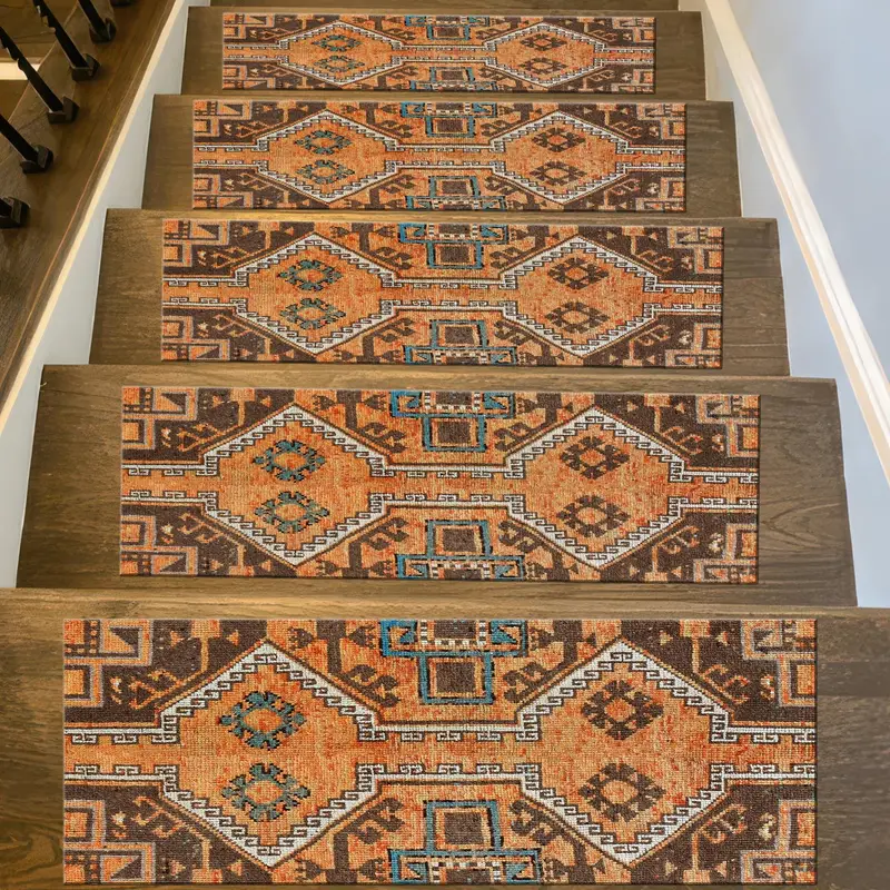 Orange & Brown Geometric Step Rug with Ethnic Kilim Design