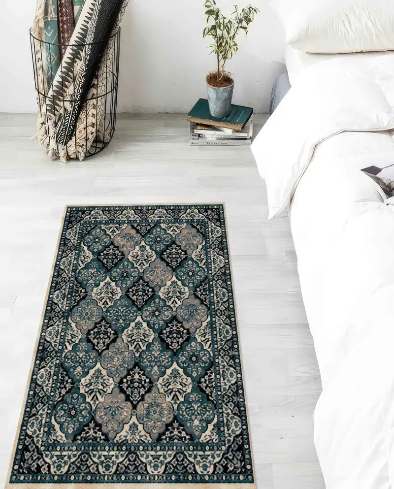 Blue Ethnic Pattern Printed Ottoman Prayer Rug for Spiritual Worship