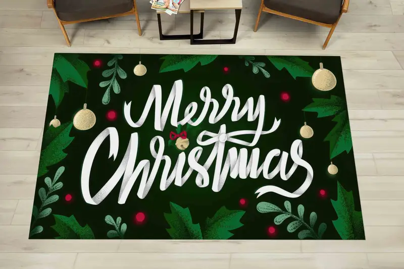 Joyful Scene Printed Rug - Modern Xmas Holiday Decor