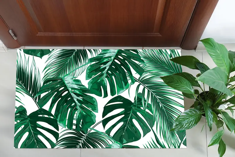 Tropical Palm Leaf Printed Rug, Green Floral Design