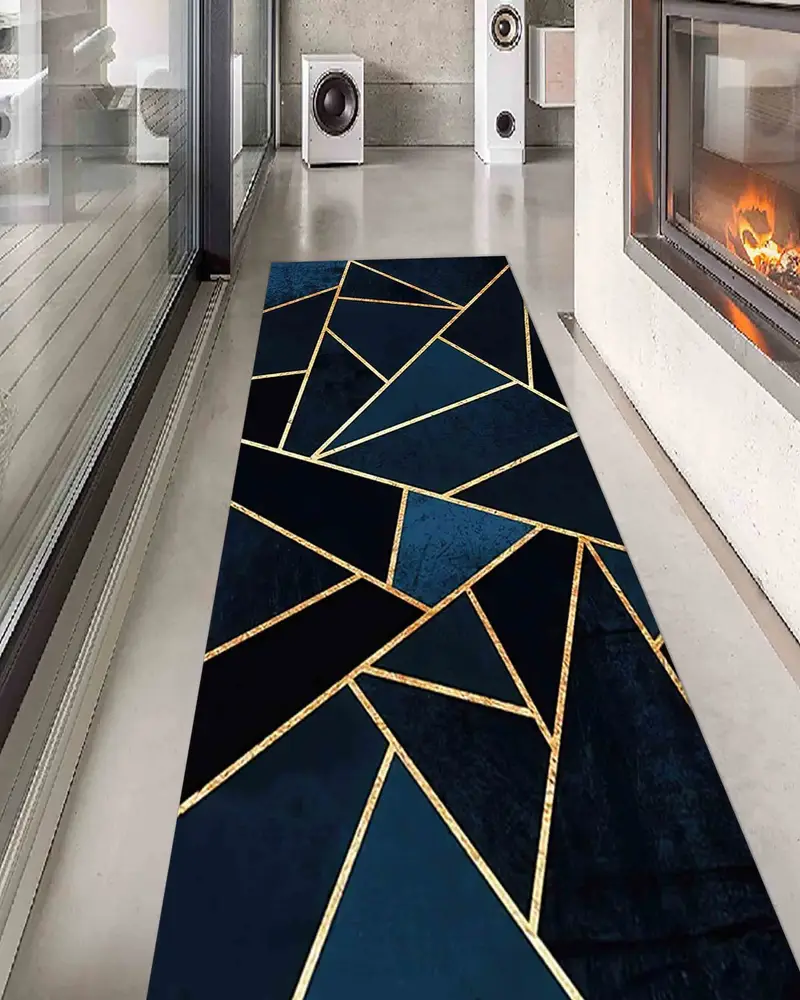 Navy Blue Geometric Modern Printed Rug, Trendy Design, Soft Texture