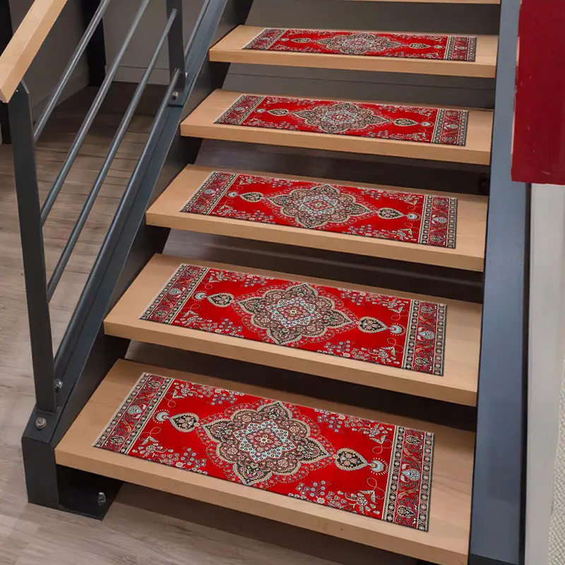 Red & Blue Floral Vintage Printed Rug: Turkish Step Rug