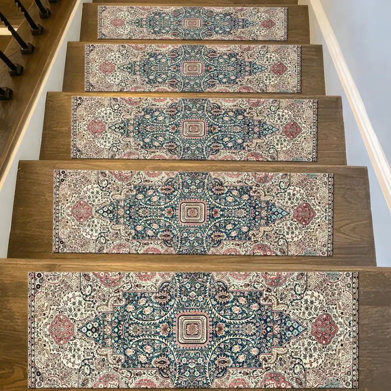 Floral Vintage Printed Step Rug, Turkish Style, Green & Beige