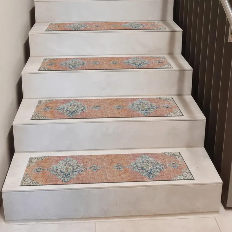 Orange Medallion Printed Rug: Step Rug with Boho Faded Charm