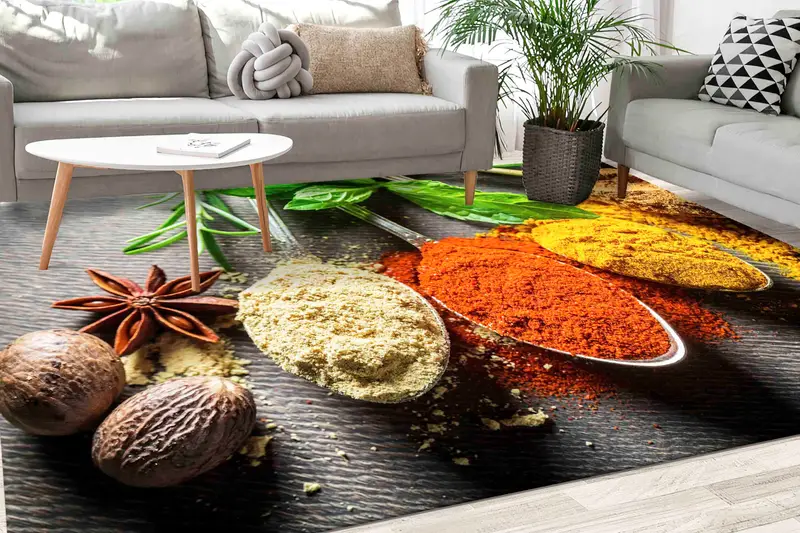 Vibrant Spice Print Rug - Modern, Colorful Kitchen Essential