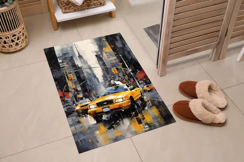 Taxi Scene Printed Rug: Yellow, Gray, City Vibes for Modern Offices