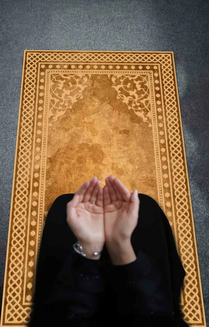 Brown Printed Prayer Rug: Religious, Spiritual, Soft Tones