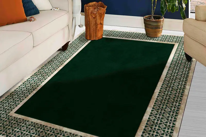 Green & Gold Abstract Geometric Modern Printed Rug