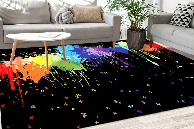 Butterfly Printed Rug: Modern, Abstract, Rainbow, Trendy Design