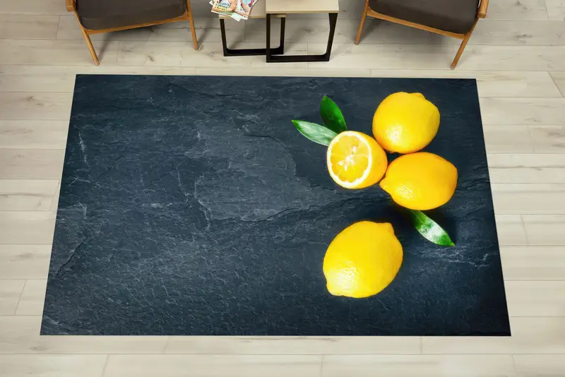 Lemon Hue Modern Printed Rug: Yellow Kitchen Accent
