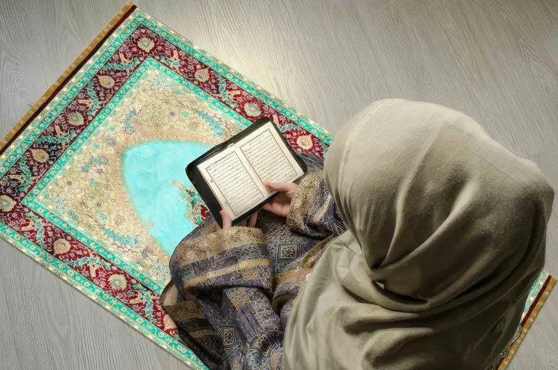 Blue & Red Beige Printed Ottoman Prayer Rug for Worship