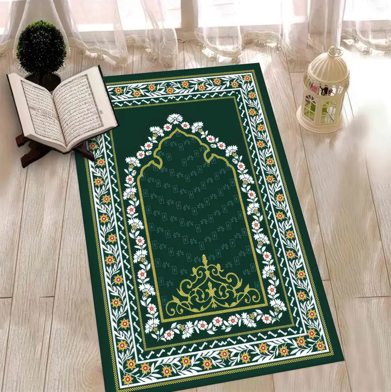Green Floral Printed Rug for Spiritual Worship and Prayer