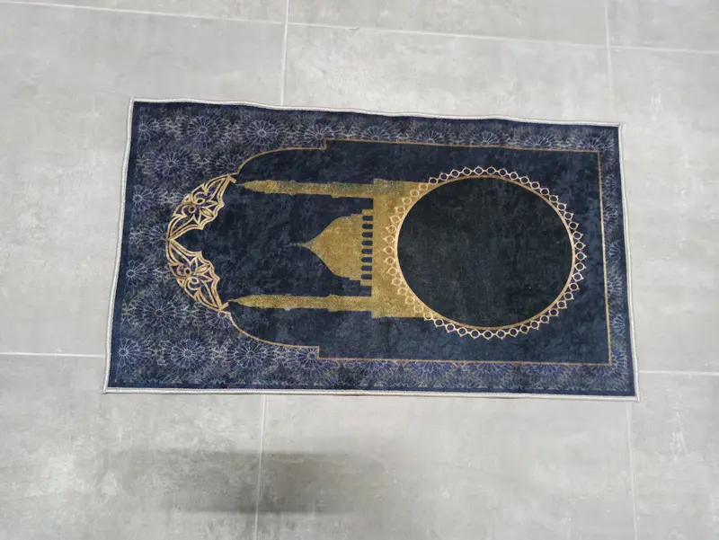 Navy Blue Gold Prayer Printed Rug: Luxury Religious Spiritual Decor