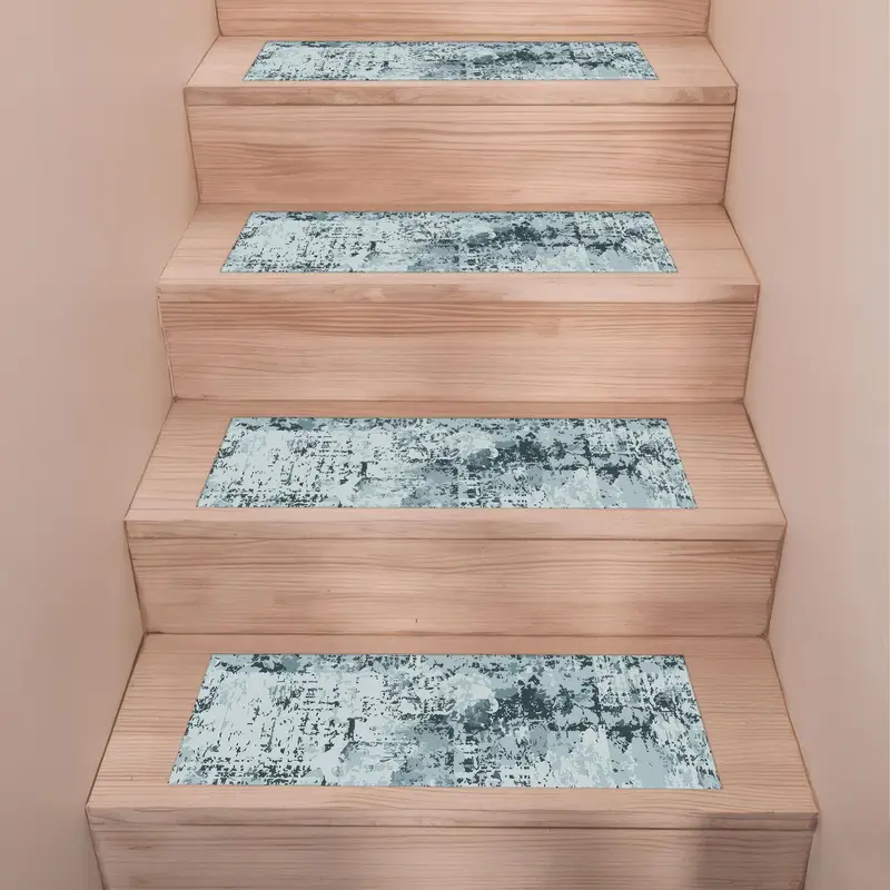 Light Blue Abstract Step Rug, Printed Design for Modern Spaces