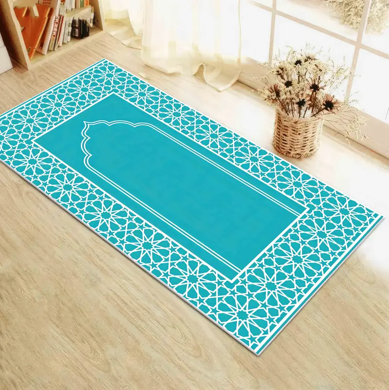Blue Blossoms Printed Rug: Prayer, Worship, Spiritual Elegance
