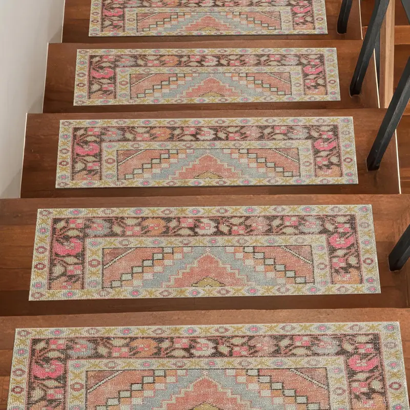 Geometric Print Step Rug, Soft Tones, Ethnic Boho Design