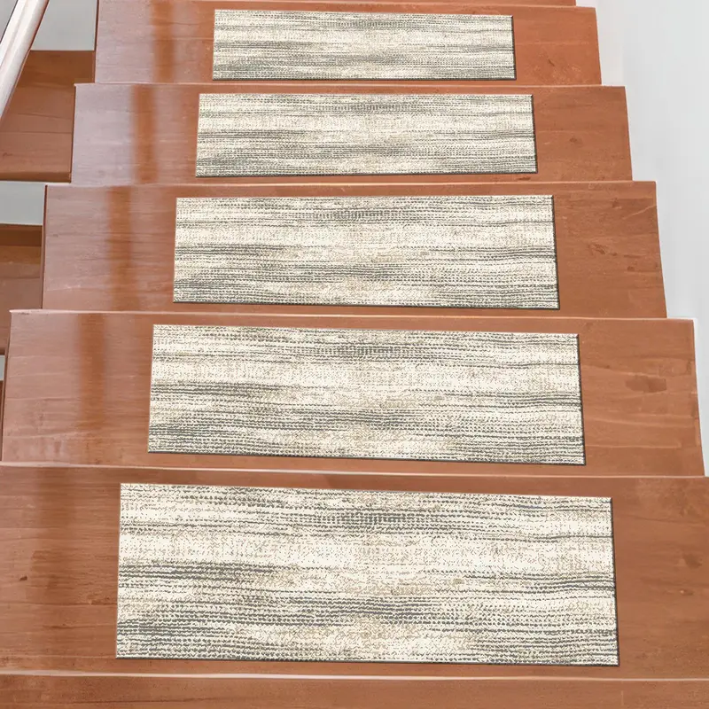 Beige Striped Printed Rug: Modern Bohemian Kilim Design