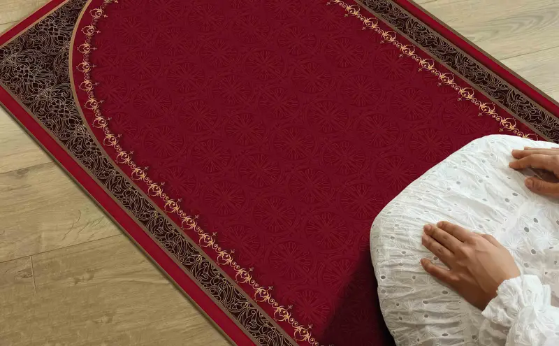 Red & Gold Prayer Rug: Luxury Printed Rug for Spiritual Worship