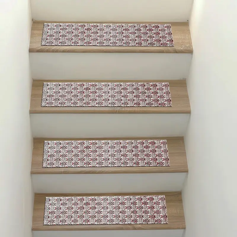 Beige & Red Floral Step Rug, Vintage Style Printed Rug