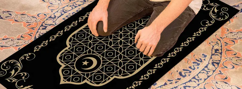 Gold & Black Moon Star Printed Rug for Prayer & Worship