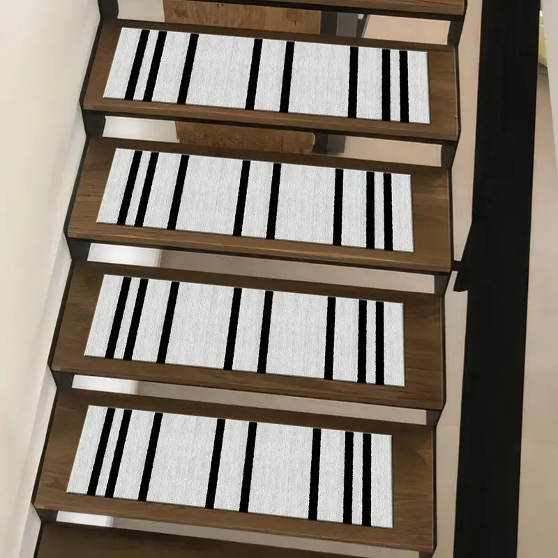 Vintage Black & White Liner Printed Step Rug - Timeless Design