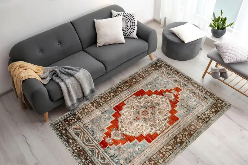 Medallion-Inspired Printed Rug: Vintage Turkish Design for Modern Homes