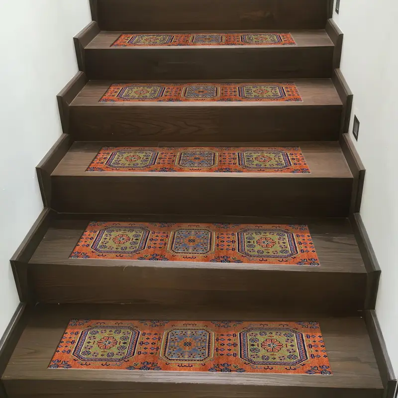 Orange & Blue Vintage Floral Design Printed Step Rug
