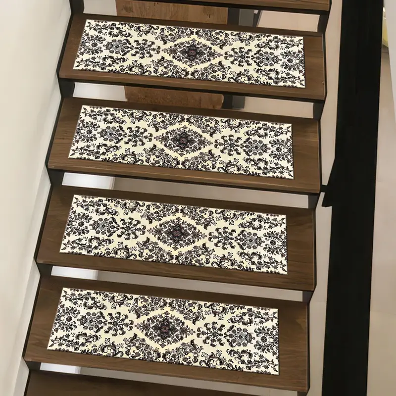 Beige Red Floral Vintage Printed Rug - Turkish Design Step Rug