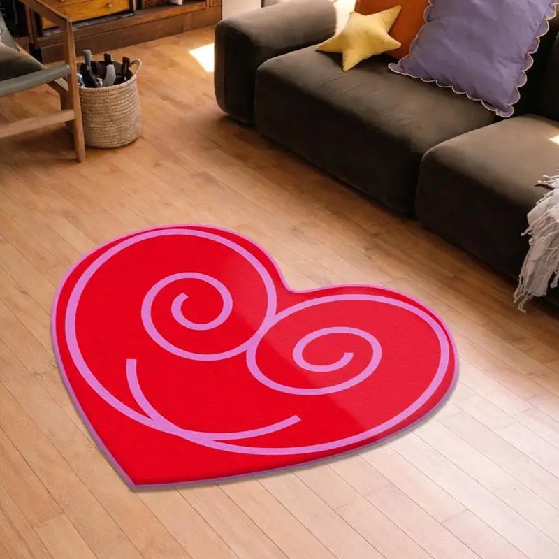 Heart Shaped Floral Printed Rug, Valentine's Day Design