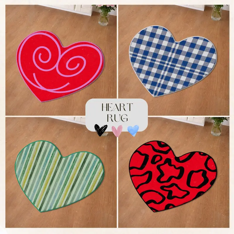 Floral Heart Shaped Printed Rug - Valentine's Day Design