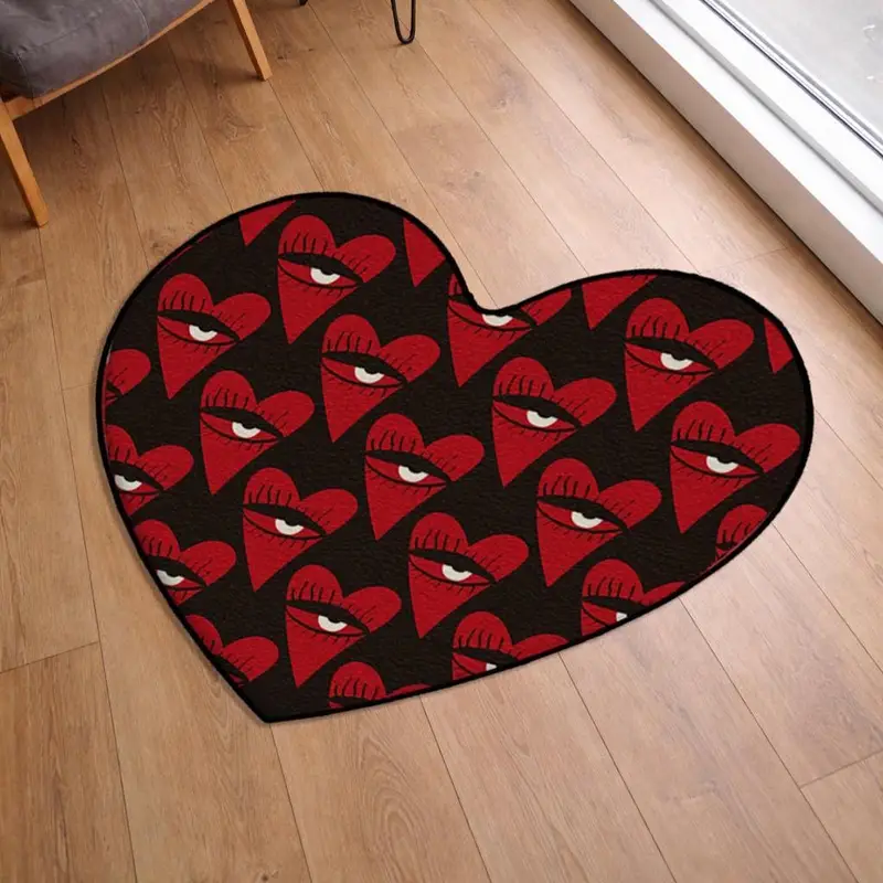 Floral Heart Shaped Printed Rug, Valentine's Day Special Design