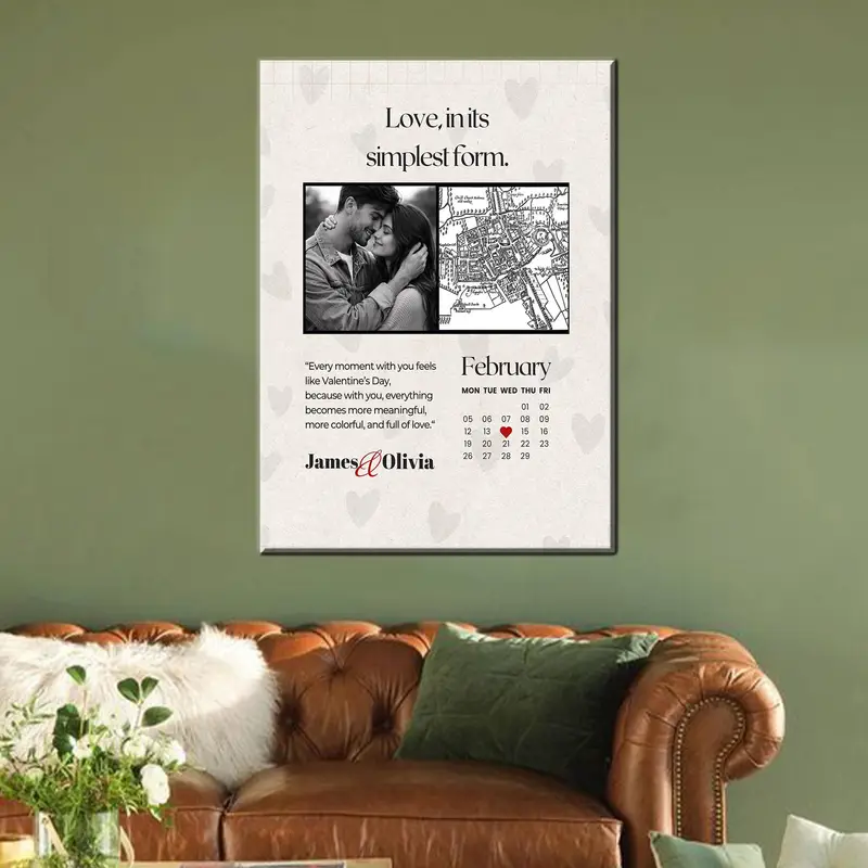 Valentine’s Day Special Beige & Black Personalized Canvas – Elegant Love Map Photo Collage