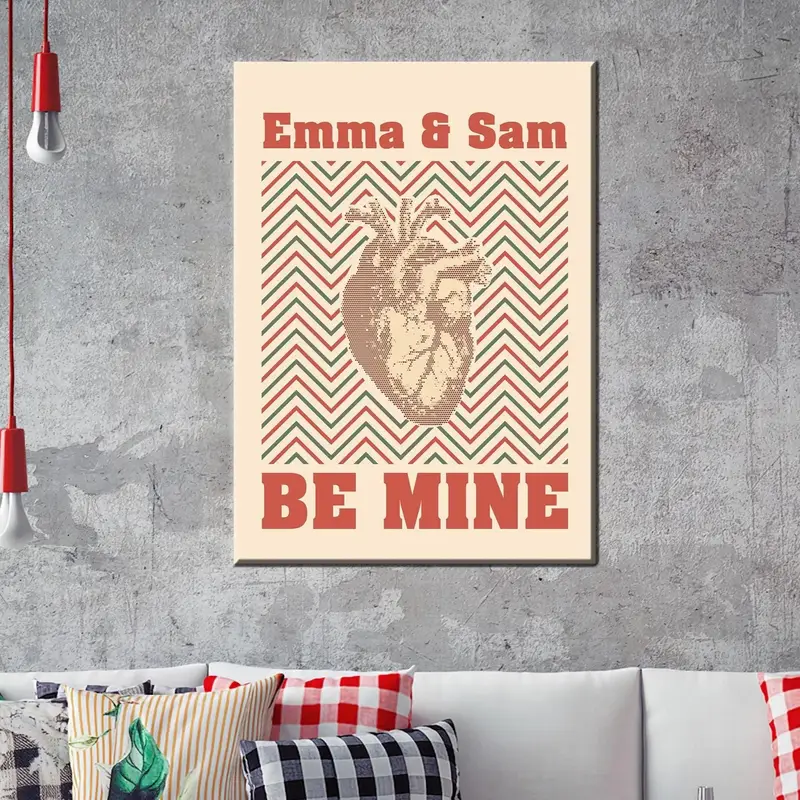 Emma & Sam Vintage Poster Beige & Red Canvas – Valentine’s Day Personalized Gift for Couples