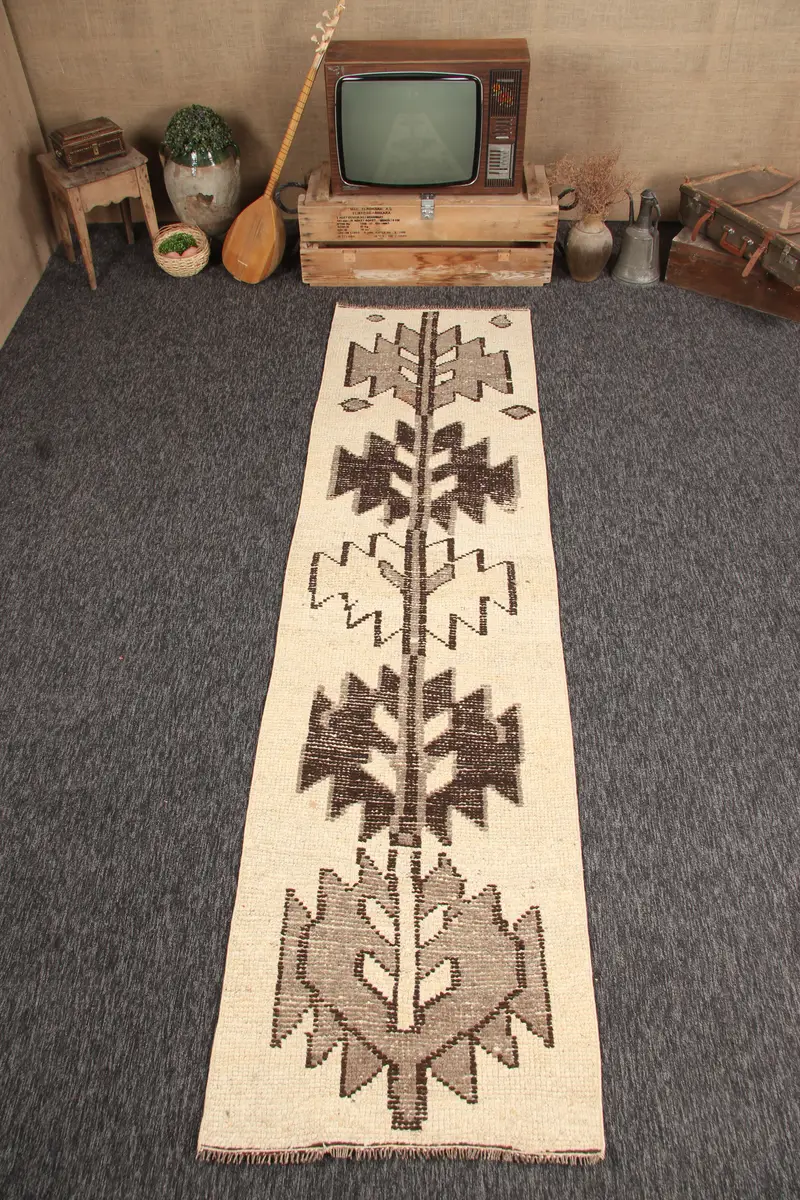 2.5x9.4 ft Rug, Turkish Vintage Rug, Beige Herki Rug