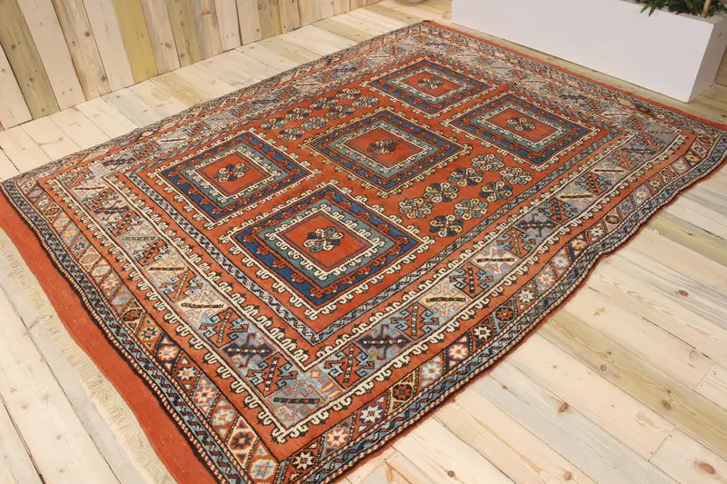 Turkish Vintage Large Rug 6.6x9 ft, Red Polka dot Rug Wool