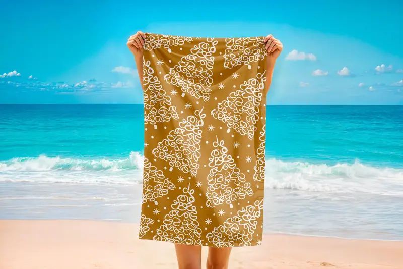 Golden Christmas Tree Cotton Blend Towel, Holiday Beach or Golf: 12x20 inch